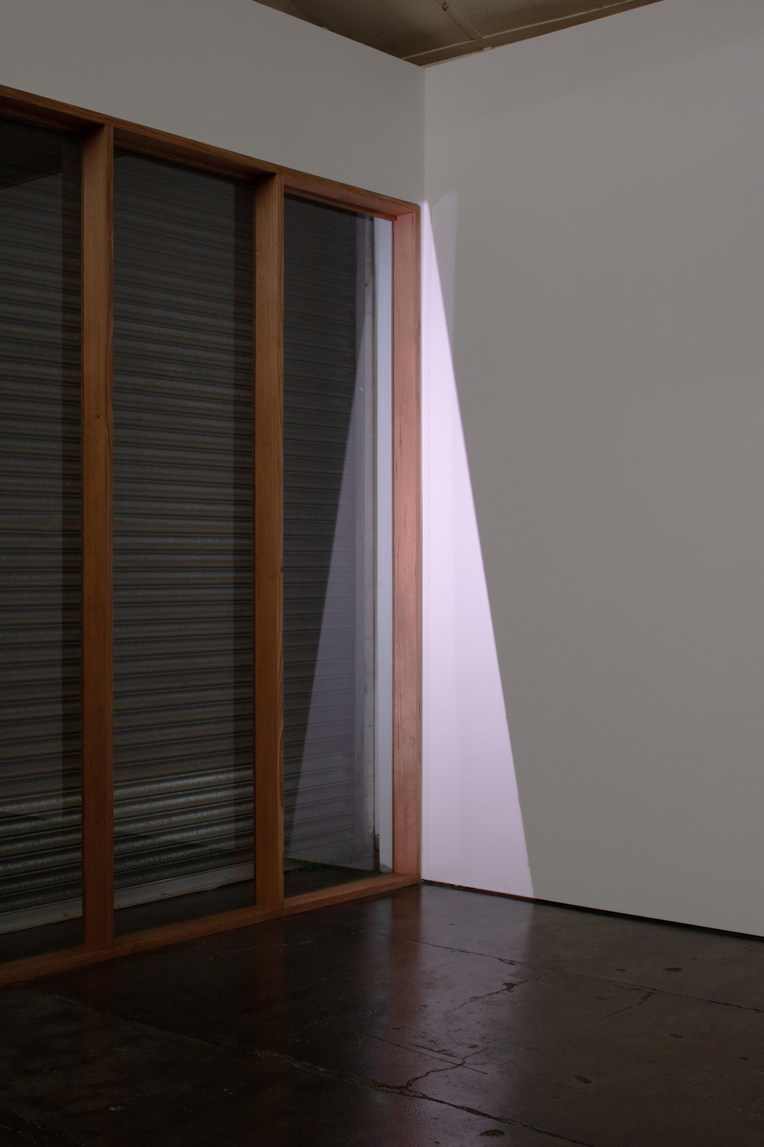 Electric light (facts/figures) continues Daniel von Sturmer’s investigation into light as a powerful and fluid material. The installation involves a programmed intelligent light which projects custom drawn geometric shapes: a square, a circle, lines and grids (the ‘figures’) that extend or warp within different galleries or environments (interacting with the ‘facts’ of the space). The work uses technology as an active generator of images and encounters within the gallery space, and brings the apparatus into play as a kind of character in the unfolding drama. Expanding on static light works of Michel Verjux, Barbara Kasten and others, the work engages directly with architectural propositions inherent within the spaces, as well as the overlooked and forgotten artefacts of use such as abandoned hooks, isolated bollards, or plumbing work unsuccessfully hidden in gallery white paint. |