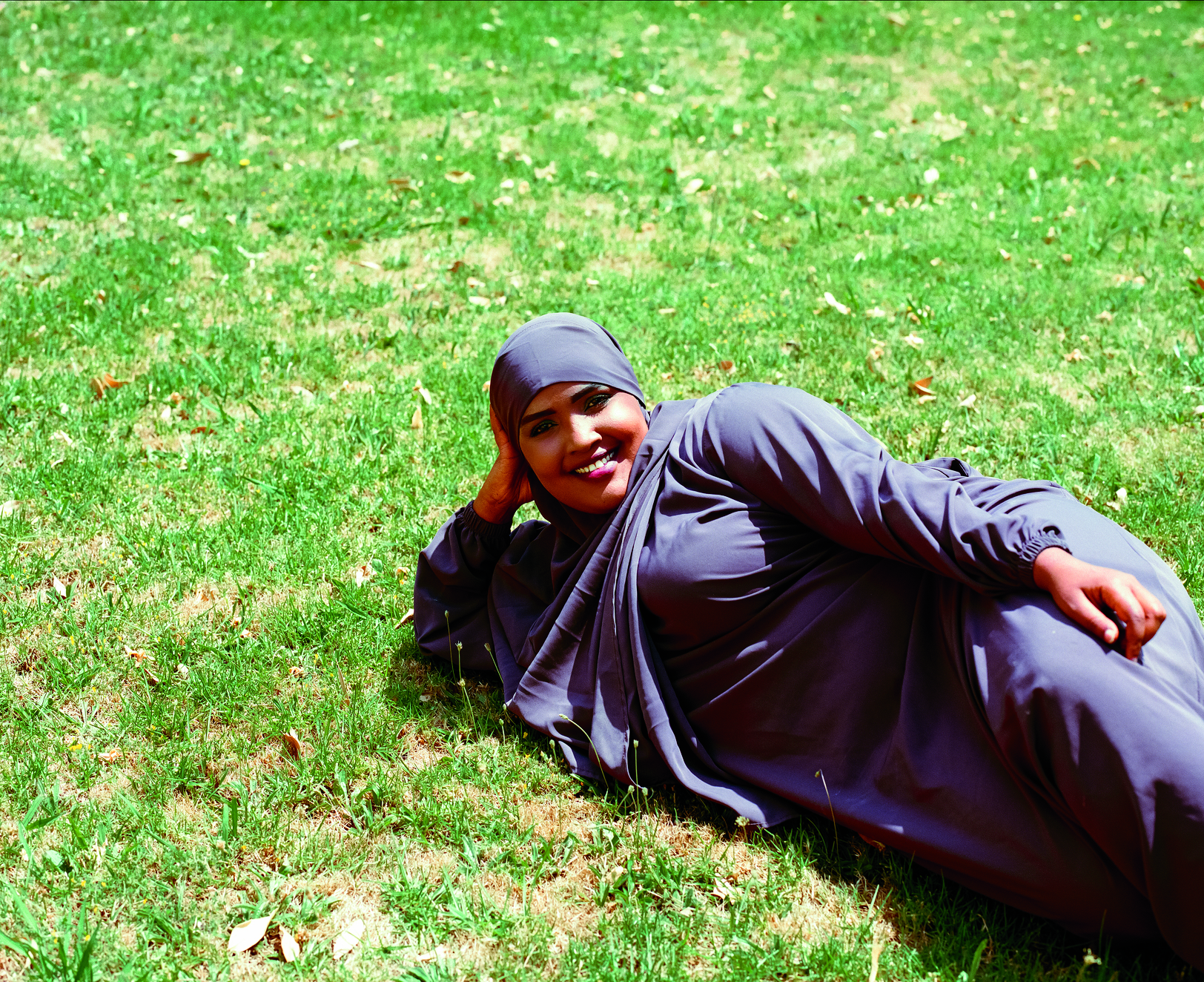 The Black female presence is represented in a variety of ways within the exhibition by utilising the collaborator’s gaze; staring at the viewer with unwavering eye contact, softly smiling, peering off into the dreamy distance, staring past the viewer. All of these images challenge the patriarchal narrative dictated by the white male gaze’s objectification of women, and moreover Black women. One work features a Black woman in a floral dress standing on a white podium, hands clutched, wearing an intricate headdress and staring almost serenely beyond the viewer. The serenity of the work is starkly shattered once the title Scramble becomes apparent; the form of a particular slave auction during the Atlantic slave trade in the West Indies and United States. Once this is understood, reading the work, and more importantly the woman’s gaze changes dramatically and we understand she is not in a position of power but the opposite. The Black female presence is also challenged in the work ZAHRA which sees a mature woman wearing a headscarf, standing in an assertive position within a contemporary domestic setting, one hand extended and an almost smile on her face, owning her space and presence in her world, but what is her safety outside of her domestic environment and within the public domain?